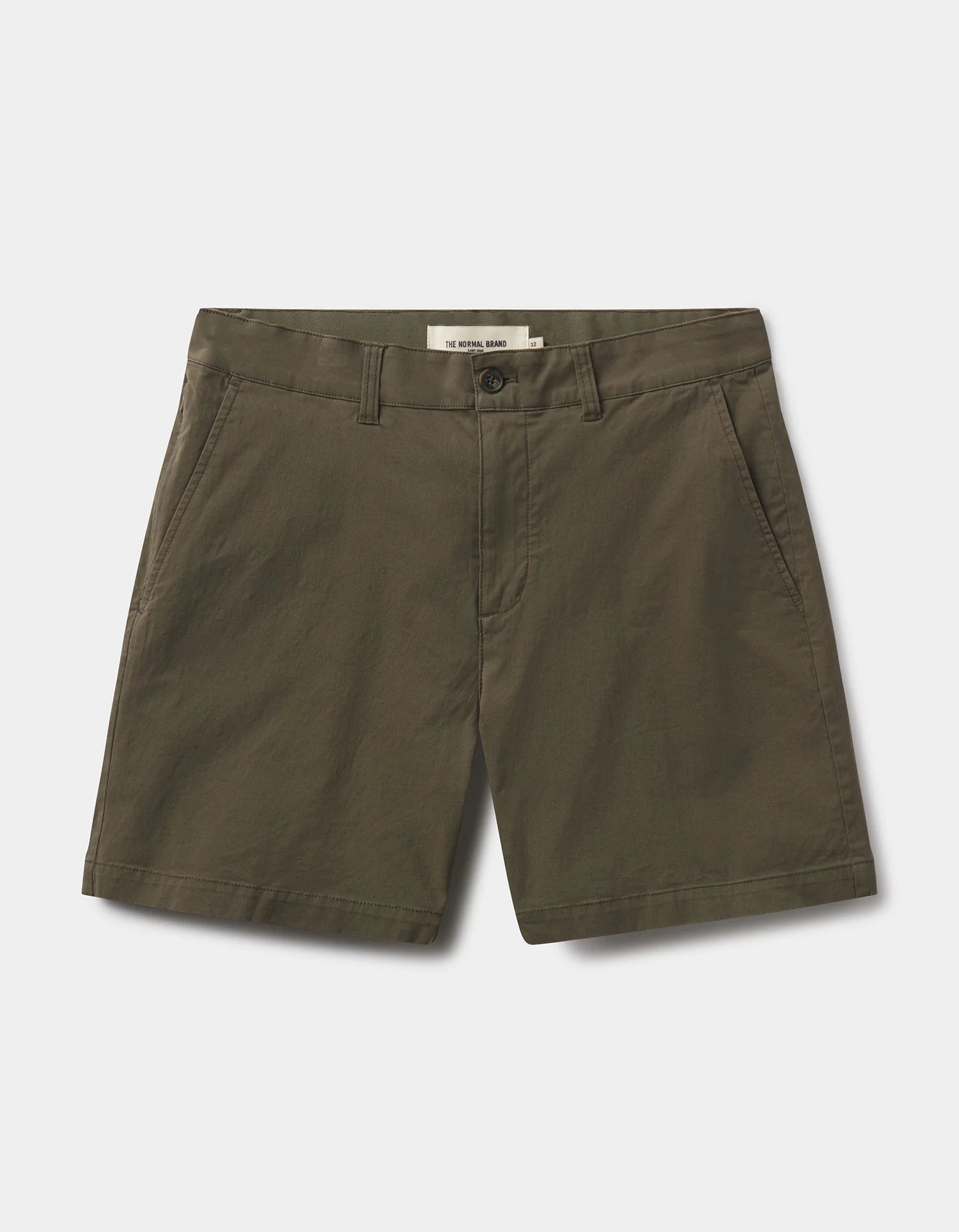 Perfect for dressing up or down. The Stretch Chino Short is made from a slightly peached blend of cotton and spandex, and has comfortable stretch with a mid-weight feel. The classic fit includes a 7" inseam, and key details include a contour waistband, center front zip fly with button entry, belt loops, front slash pockets, and two back double welt pockets.